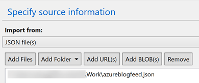 Specify the Source Information. You can either select a single JSON file or select an entire folder.